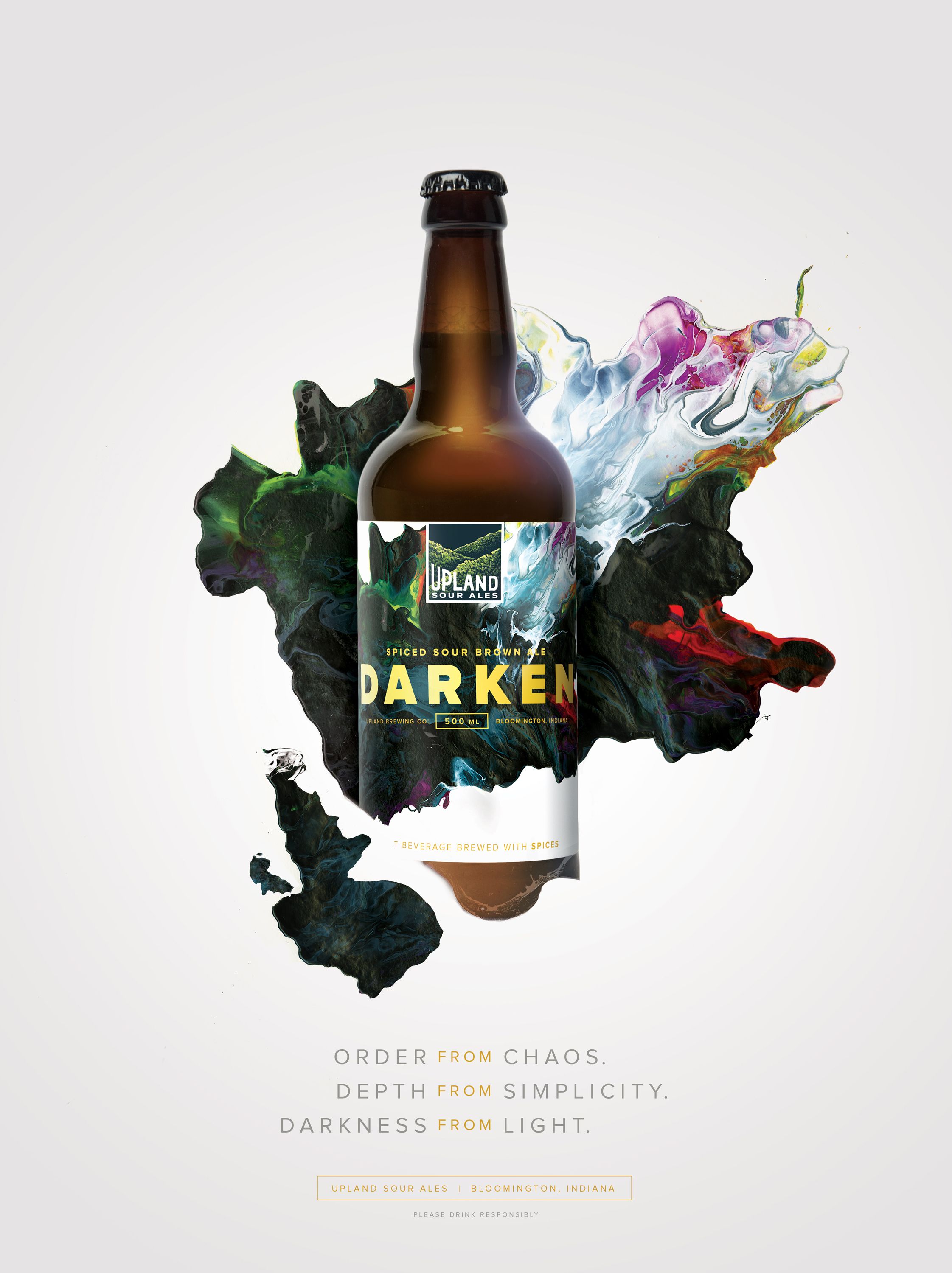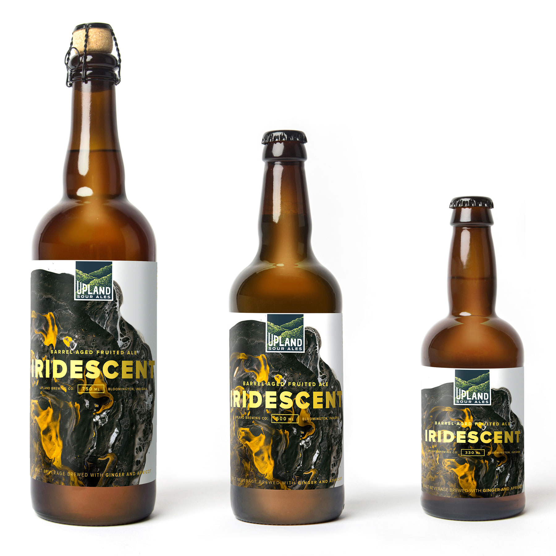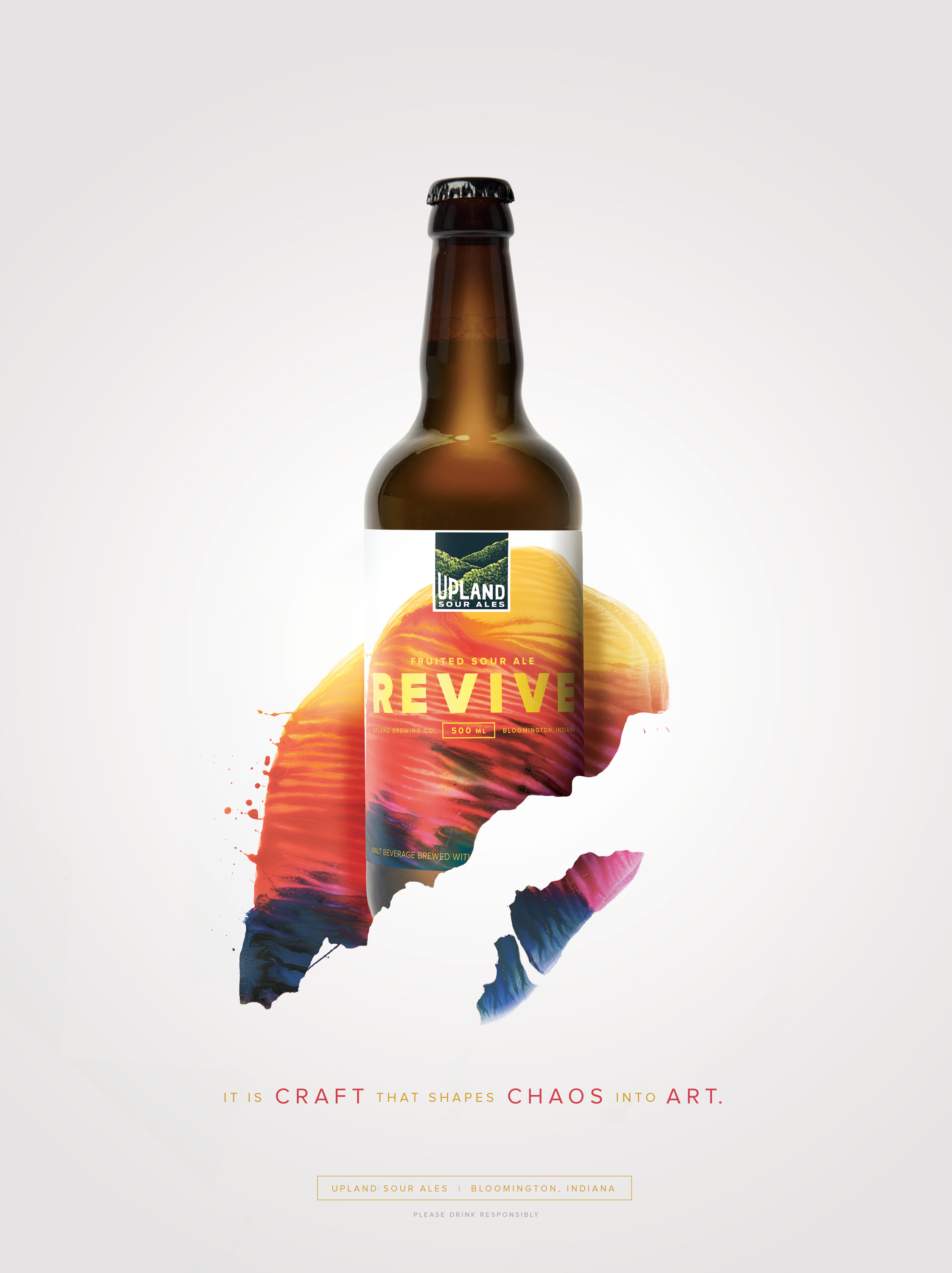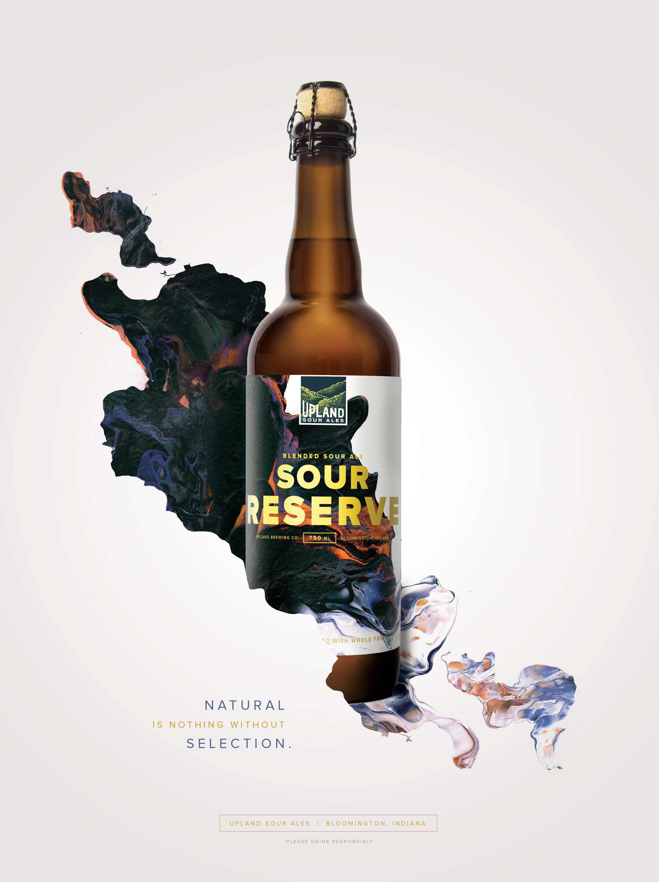 As we learned more about the brewing process, it became evident that a crucial part of what makes Upland’s sours so good is the careful blending of different batches to create a complex, yet balanced flavor profile. And so the idea of “blended works of art” was born—brought to life in packaging, print and collateral featuring artwork by .