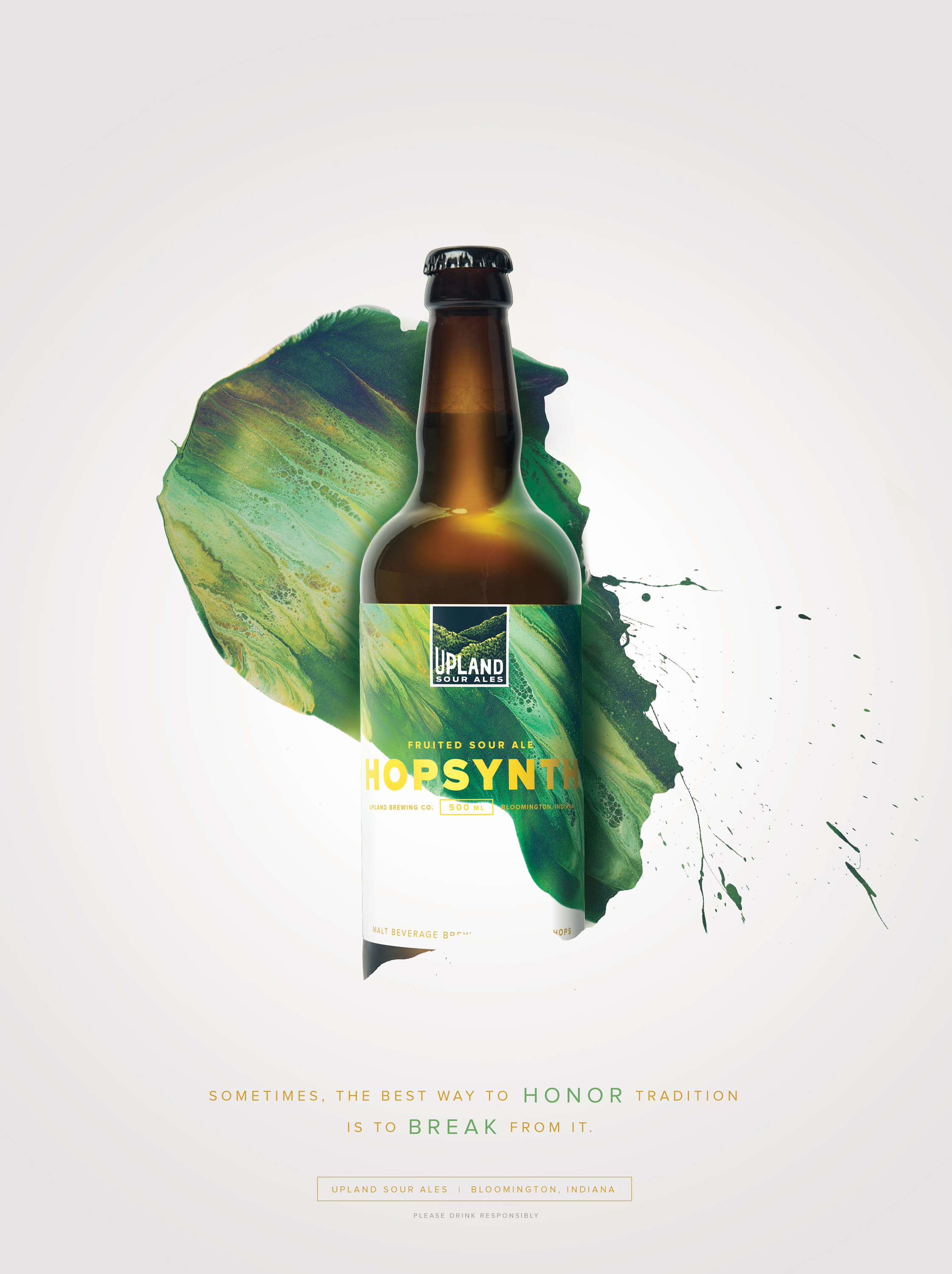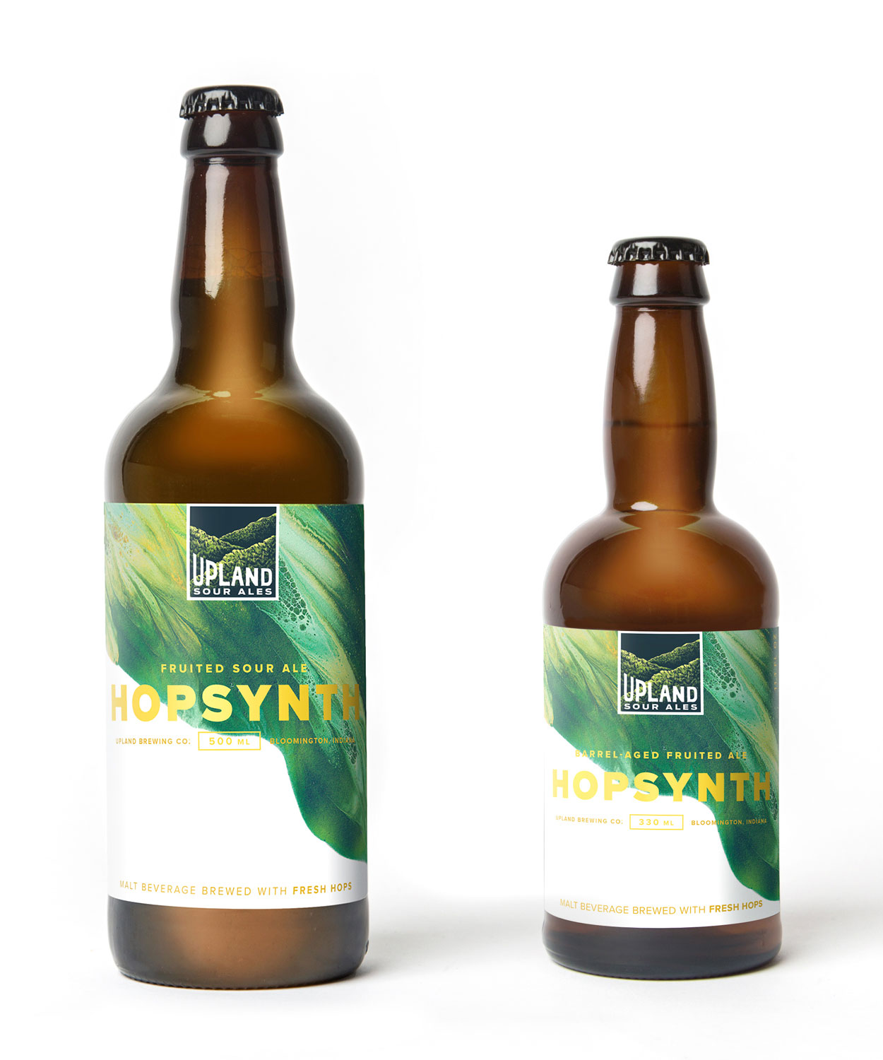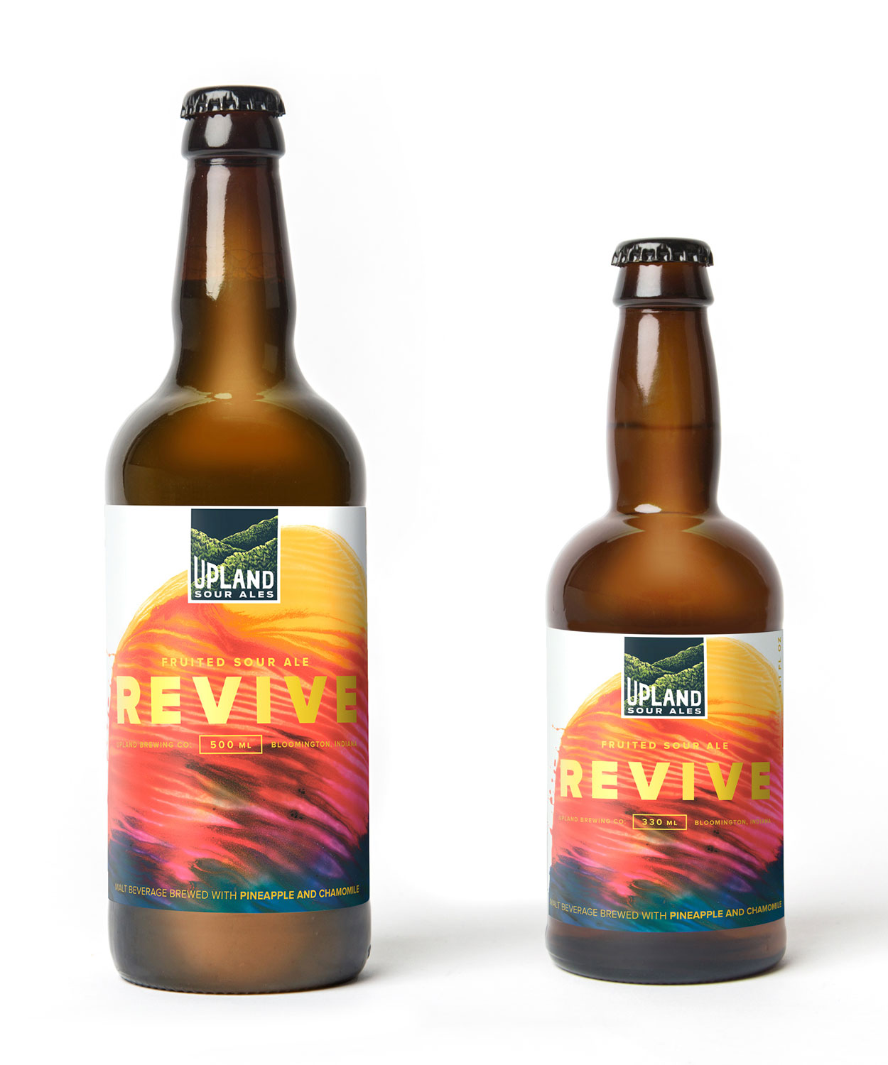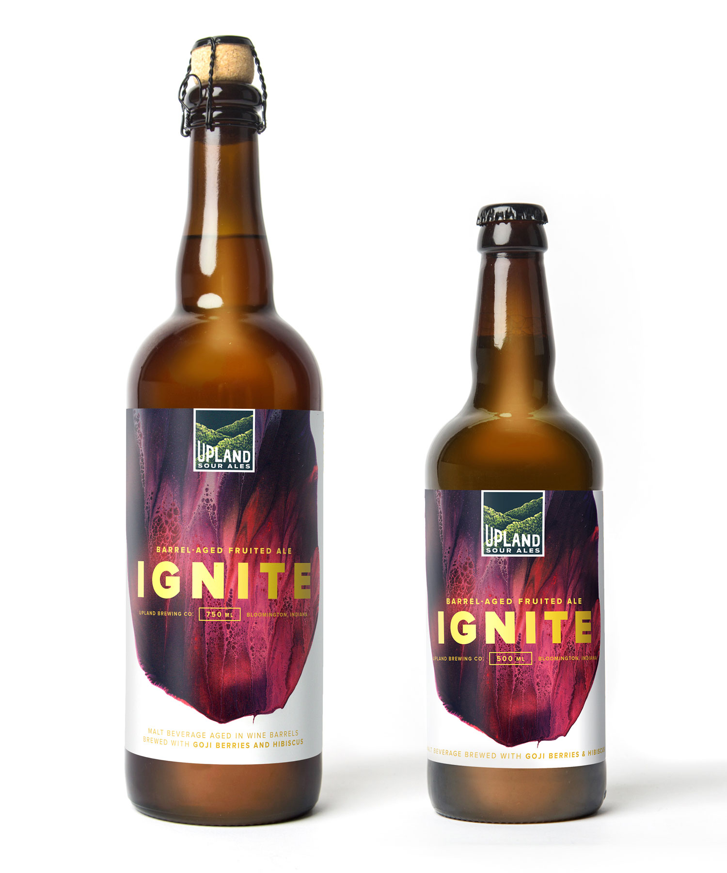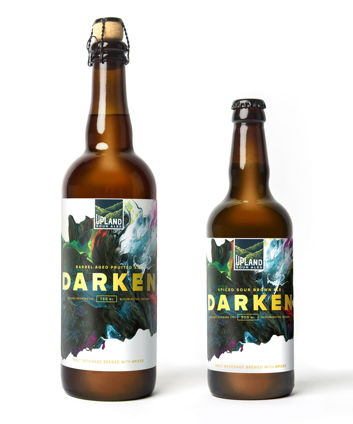 As we learned more about the brewing process, it became evident that a crucial part of what makes Upland’s sours so good is the careful blending of different batches to create a complex, yet balanced flavor profile. And so the idea of “blended works of art” was born—brought to life in packaging, print and collateral featuring artwork by .